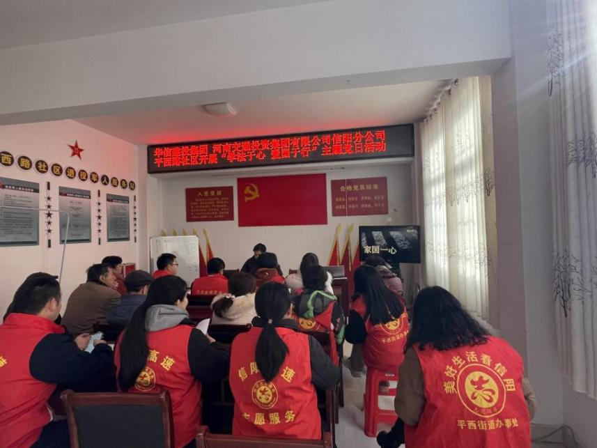 為進一步加強愛國主義教育,傳承弘揚愛國主義精神,營造愛國主義良好氛圍,1月29日,華信建投集團聯(lián)合河南交投信陽分公司前往平西路社區(qū),以“四同”豐富形式開展“學法于心 愛國于行——《中華人民共和國愛國主義教育法》宣傳教育實踐”主題黨日活動。